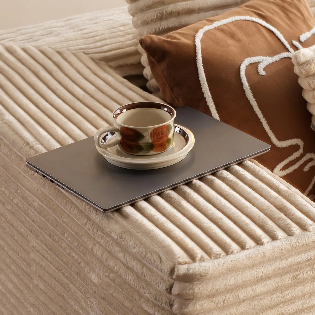 Avec un toucher soyeux, aussi doux que la soie, le tissu en velours côtelé apporte chaleur, élégance et un confort constant toute l’année, tandis que ses lignes subtiles et sa légère brillance confèrent au canapé un caractère et une personnalité uniques.