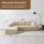 Offrez-vous un espace de détente modulable et ultra-confortable, conçu pour s’intégrer parfaitement dans votre intérieur sans nécessiter de montage. Avec son revêtement en velours côtelé doux et son assise façon nuage, le Canapé Solae Comfort est le canapé idéal pour s’allonger, lire ou partager un moment agréable.