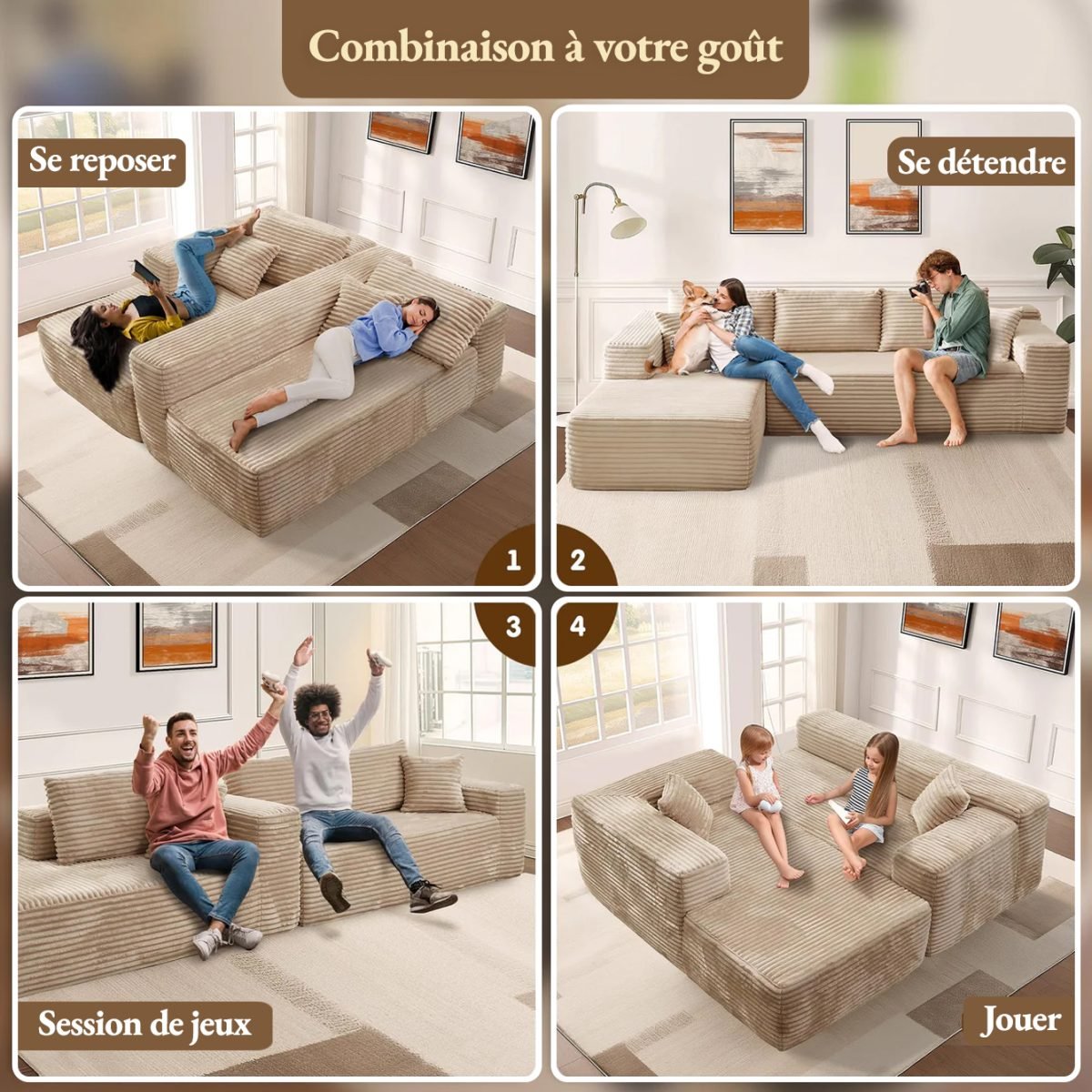 Disposition flexible : Son design modulable s’adapte à toutes vos envies : dans un grand salon, un petit appartement, une chambre ou même une salle de jeux pour enfants.