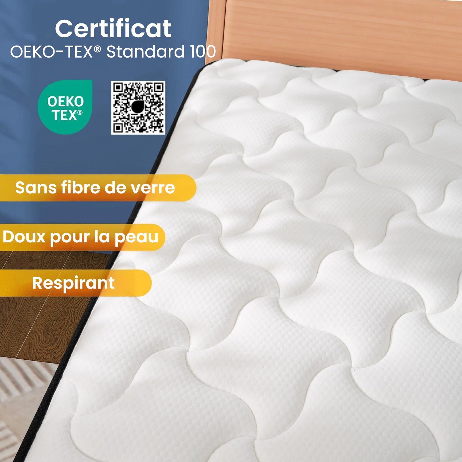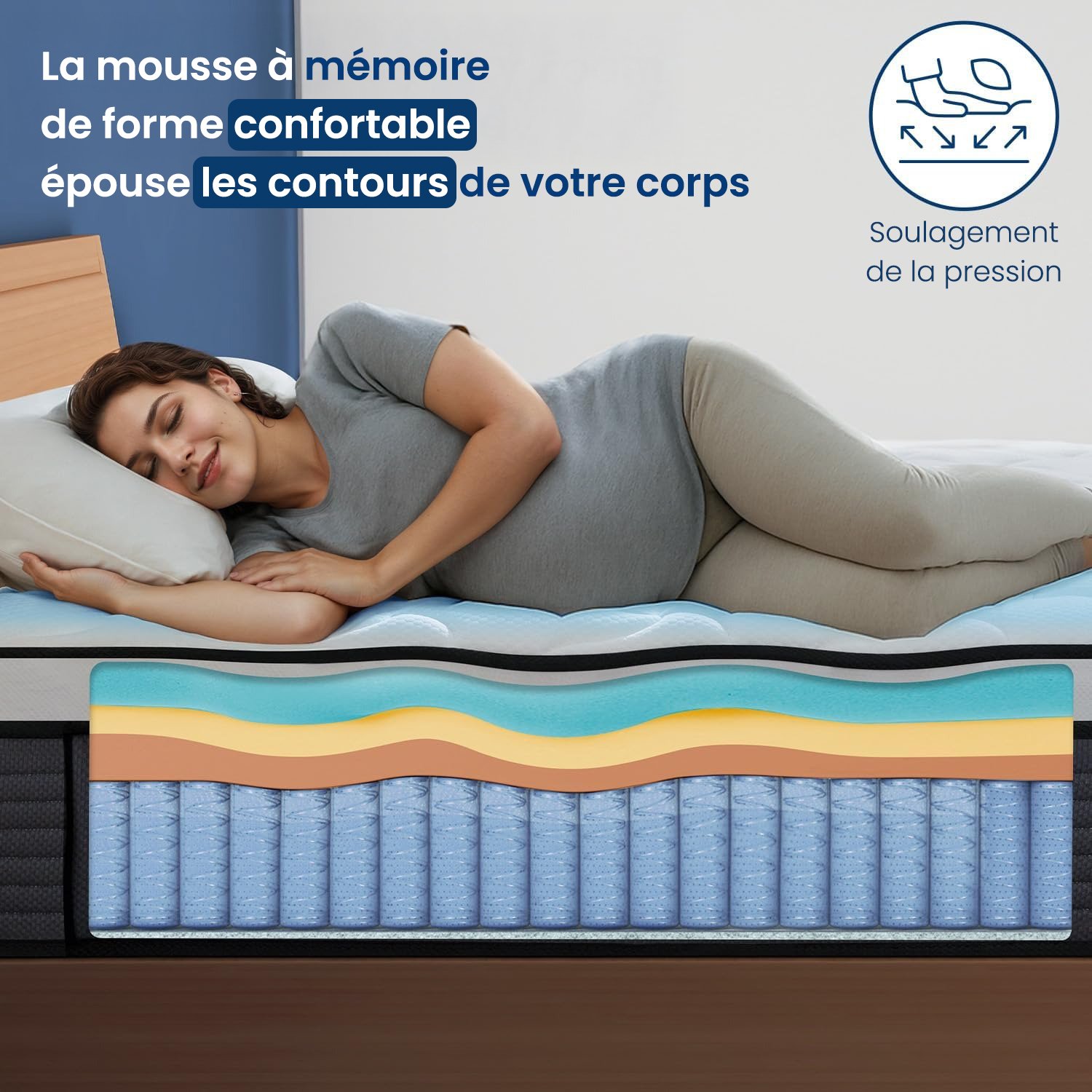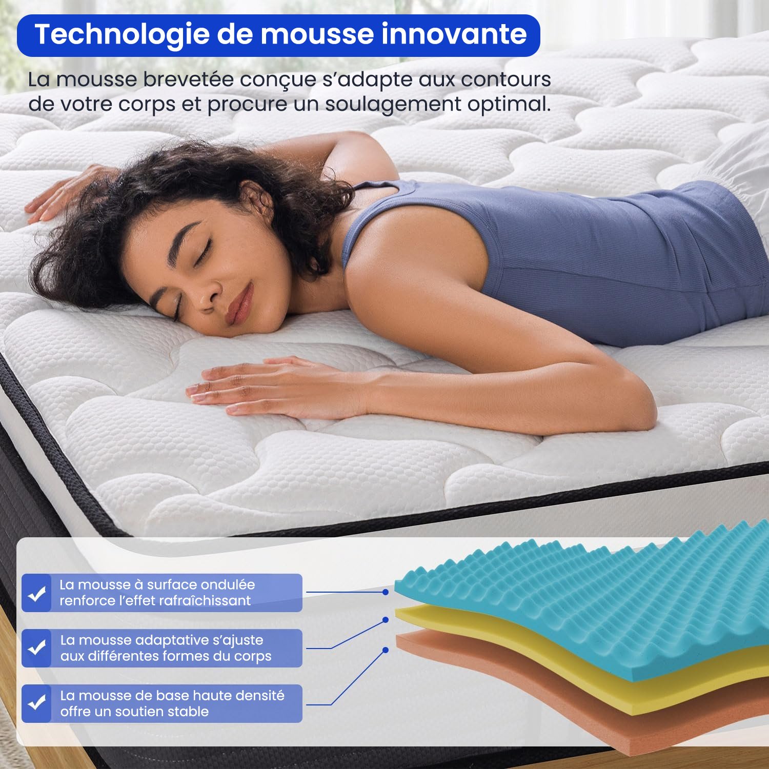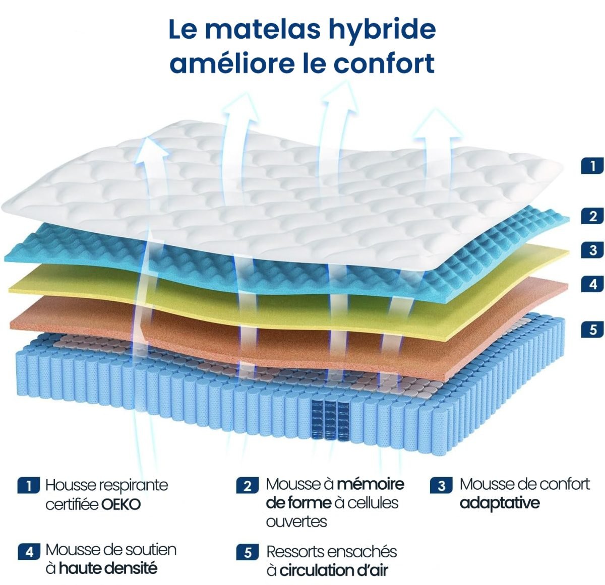 Type : Matelas hybride (mousse mémoire + ressorts ensachés)