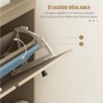 • Capacité pour 20 paires de chaussures : Grâce à ses 4 compartiments abattants avec étagères réglables, il permet d’organiser différents types de chaussures, des sandales aux bottes.