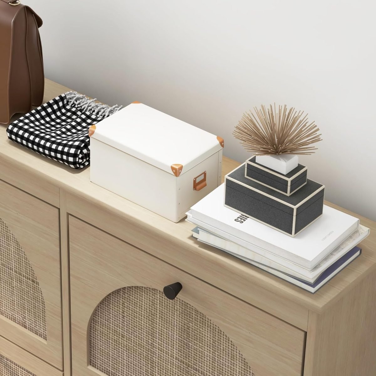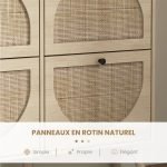 • Style naturel et sophistiqué : Fabriqué avec des matériaux de haute qualité, sa finition en bois clair et ses détails en rotin naturel apportent une touche chaleureuse et élégante à tout espace.