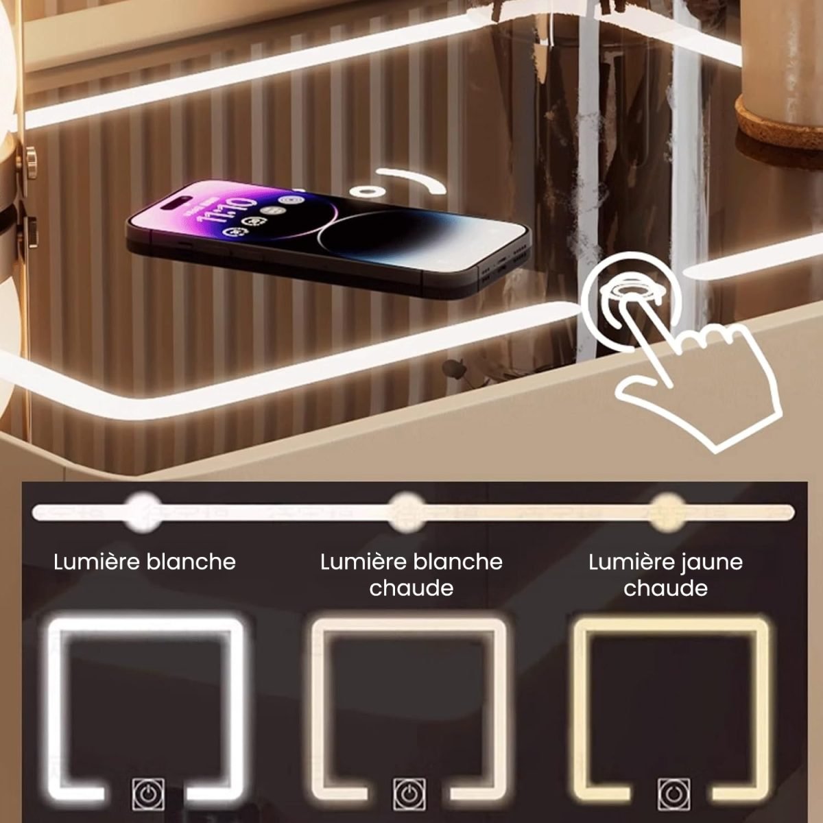 Découvrez la Table de nuit Aura LED Zen, une fusion parfaite entre design moderne, technologie et fonctionnalité. Idéale pour les chambres, salons ou bureaux, cette table de chevet avec charge sans fil et lumière LED intelligente transformera votre quotidien avec une touche d’élégance futuriste.